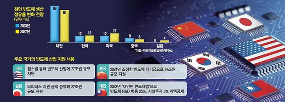 실제로 최근 일본 정부는 반도체산업 육성에 공격적으로 자금을 투자하고 있습니다. 지난달 30일 니혼게이자이신문(닛케이)에 따르면 미국 반도체 기업 마이크론 테크놀로지는 일본 히로시마현 히가시히로시마시에 고대역폭메모리(HBM) 공장을 신설하기 위해 1조5000억엔(약 14조1700억원)을 투자한다고 보도했습니다. 아울러 일본 정부도 5000억엔(약 4조7000억원)을 지원할 예정입니다.